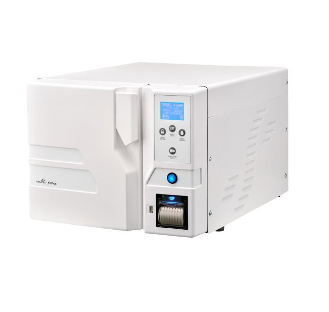 Egy többnyelvű szoftver, amely négy gombbal egyszerűsíti a navigációt a sterilizálási lehetőségek között. Az LCD kijelző folyamatos információt ad a sterilizálási ciklusokról, és figyelmeztet a hibákra vagy szervizigényre.