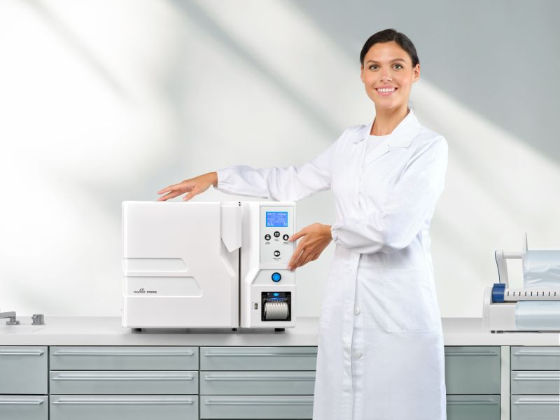A beépített ROSI hárompatronos víztisztító rendszer lehetővé teszi, hogy az autoklávat közvetlenül a rendelő vízellátásához csatlakoztassuk (opcionális).